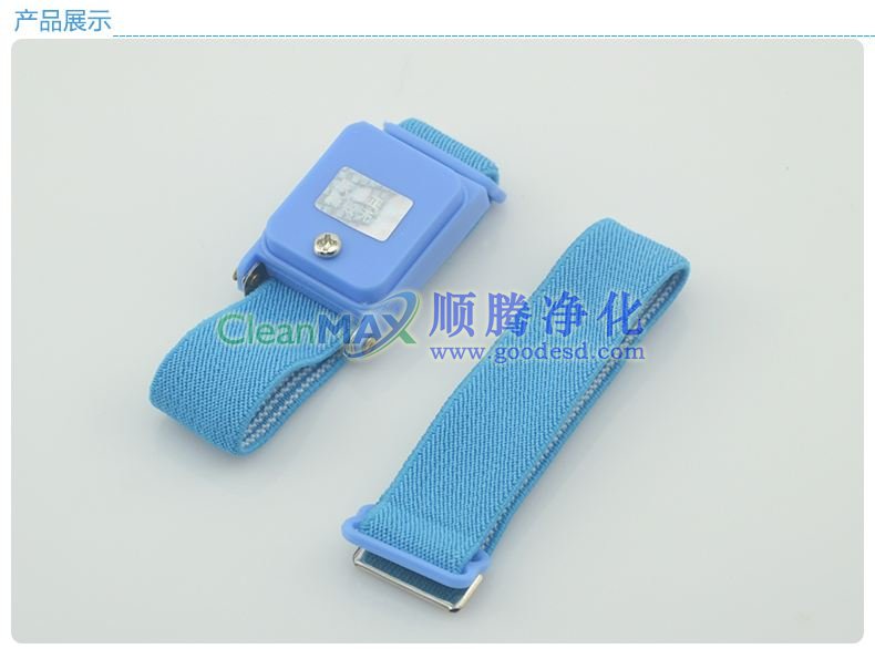 常規(guī)的防靜電手腕帶分為有繩手腕帶、無繩手腕帶,按結(jié)構(gòu)分為單回路手腕帶及雙回路手腕帶,它用以泄放人體的靜電。它由松緊帶、活動按扣、彈簧軟線.保護(hù)電阻及插頭或夾頭組成。松緊帶的內(nèi)層用防靜電紗線編織,外層用普通紗線編織。