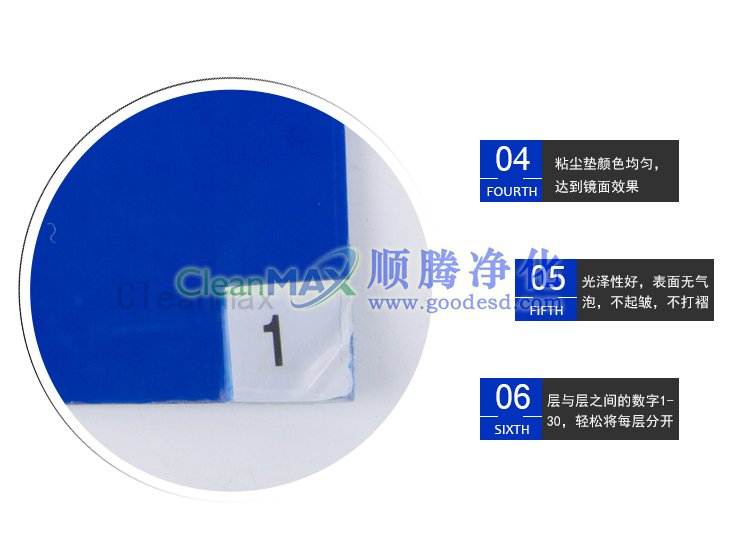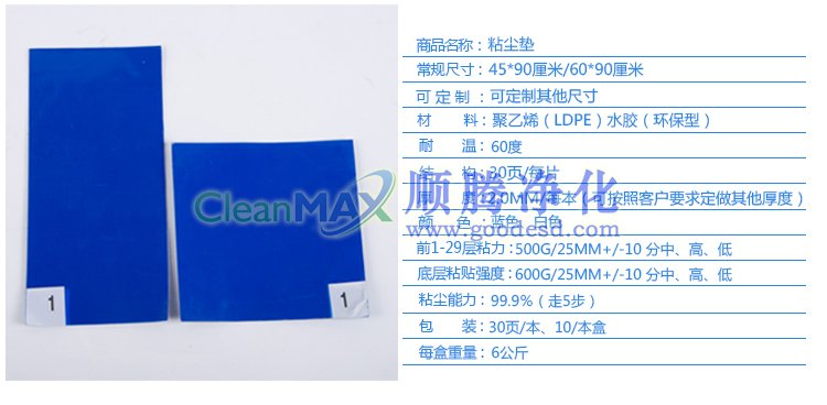 粘塵墊能有效地防止污染物及微粒由于人員的流動(dòng)而進(jìn)入有嚴(yán)格要求的工作環(huán)境,保持工作環(huán)境清潔。每塊粘塵墊由多層聚乙烯膠復(fù)合而成,每層都附有高粘性的涂層,光滑耐用,使用簡(jiǎn)單,表層受到污染后,撕去該層即可。產(chǎn)品適用于電子、計(jì)算機(jī)、LCD、儀器設(shè)備、光學(xué)、醫(yī)療設(shè)備、制藥、航天和核工業(yè)等行業(yè)。