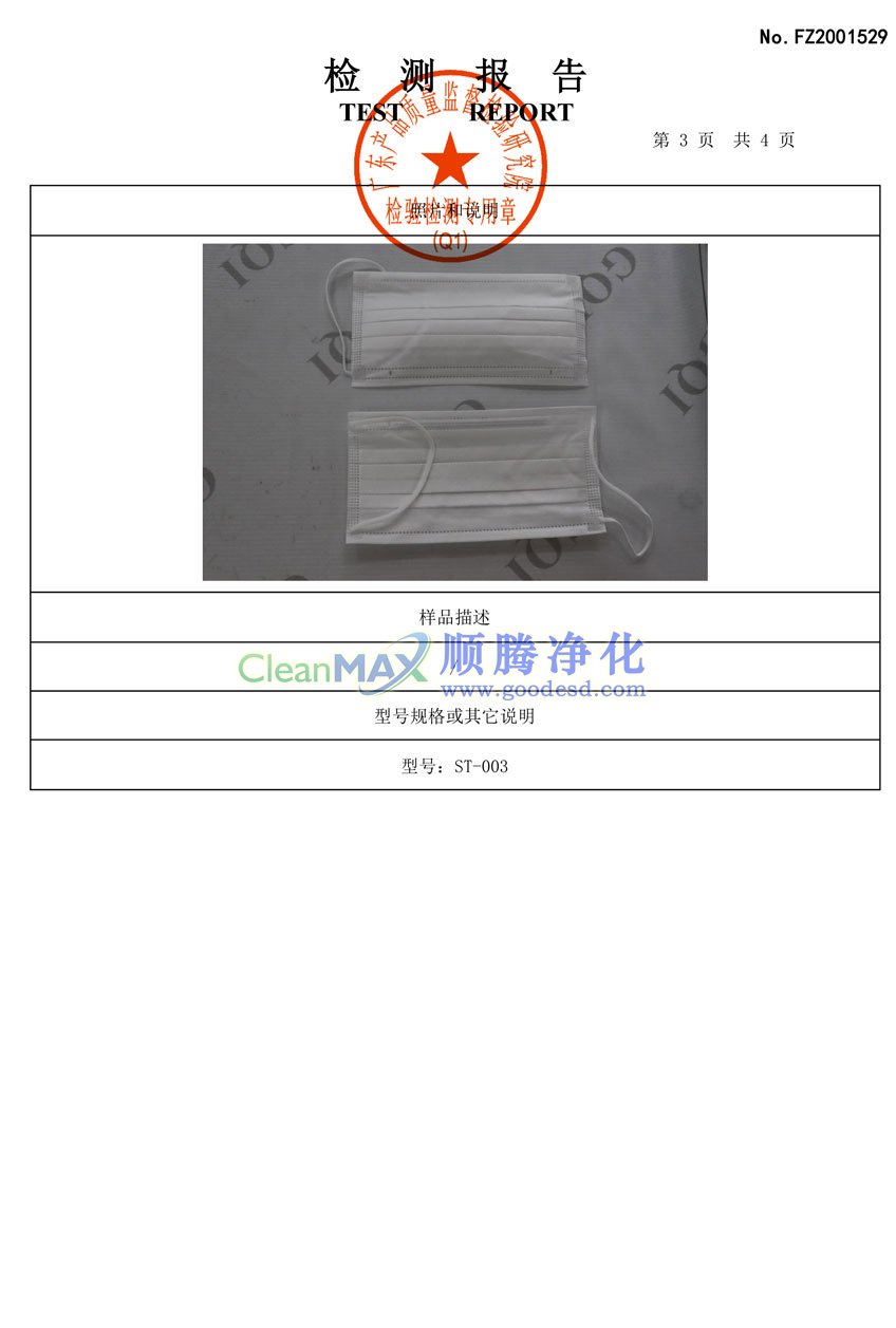 應(yīng)用:一次性潔凈室用面罩,防菌效果好;